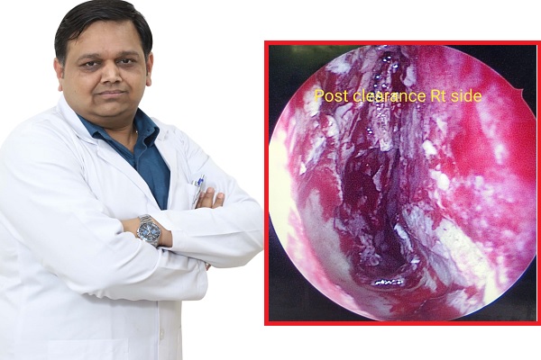 Dr. Bhardwaj said that black fungal infection is called mucarmycosis.It is an extremely rare infection. Black fungus infection is caused by steroids given during covid-19. After all the checks and fitness clearance, she was taken for surgery on 14 May. Black fungus tissue removed from both nasal cavities during surgery, The right maxillary sinus bone was removed due to excessive damage. After the operation, the patient's health is continuously monitored. Patient's condition is stable now. The hospital's director and senior cardiologist SS Basnal congratulated the doctors and nursing staff on the successful operation of the black fungal and congratulated them. Dr. Bansal said that "it is his endeavor to save his life by providing better medical care to the people in the time of this epidemic and he is working in this direction with the same objective".